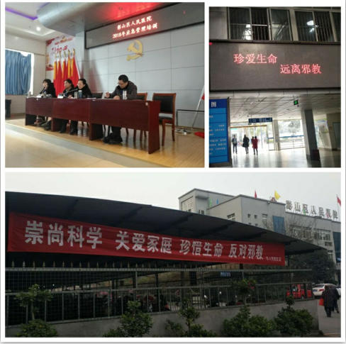 根据上级布置和我院实际,采取多种形式开展警示教育活动,悬挂崇尚科学、反对邪教标语;召开反邪教警示教育的主题会。充分利用院LED进行宣讲教育,在职工和病员中广泛开展反邪教和破除迷信活动。通过开展以上活动,使人们进一步认清了邪教的要质,增强了防范和抵御邪教侵害的能力。