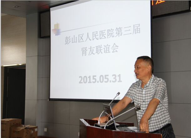 2015年5月31日上午8时彭山区人民医院客户服务部与血透室共同成功举办了第二届 肾友联谊会。病员及家属70余人次参加了会议,医院工会主席郑莉和院长助理余海燕参加了会议。会议由透析室邹德平主任主持,邹主任对血透室的工作和发展做了简短总结,同时感谢医院领导对科室工作的指导和支持,感谢全科工作人员辛勤的劳动,感谢肾病患者及家属们对我们工作的理解。工会主席郑莉代表医院领导对血透室的工作给予了高度的肯定,希望在新的一年里医护人员继续用精湛的医术,医者的仁心,更好的服务患者。