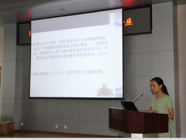 随后血透室的医护人员为患者进行了《高通量透析》和《血磷控制健康教育》的知识讲座,医护人员深入浅出,通俗易懂的讲解赢得了病友们热烈的掌声。