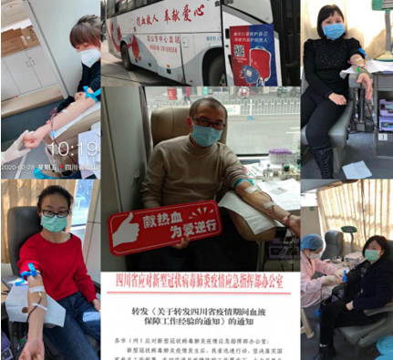 新型冠状病毒肺炎疫情爆发以来,全市人民响应号召,居家防控,尤其是实施封闭管理以来,人员出行受限,献血人群骤减,全市血液库存量急剧下降,全市临床急救用血供需矛盾日益突出,面临血液断供的危险,直接影响输血患者救治及生命健康,影响社会和谐稳定。根据眉山市应对新型冠状病毒感染肺炎疫情应急指挥部医疗救治组下发的《关于加强疫情防控期间血液保障工作的通知》的要求,我院医护人员积极参与,于2月紧急组织了23名职工参与无偿献血,捐献血液6800ML,彰显了我院医务工作者强烈的社会责任感和无私奉献的精神。