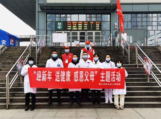 在这个特殊的春运时期,2月4日, 彭山区人民医院体检科,院外科支部,内科支部,一行7人来到春运人群密集的彭山北站,客运中心,共同开展“迎新春,送健康,感恩父母”健康体检服务主题活动。