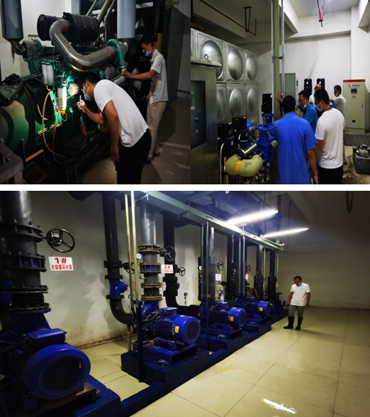 经排查,压力容器安全阀、压力表均在有效期内,管道无松动、无跑漏滴现象;发电机组、中央空调机组、二次供水机组等运行正常。
