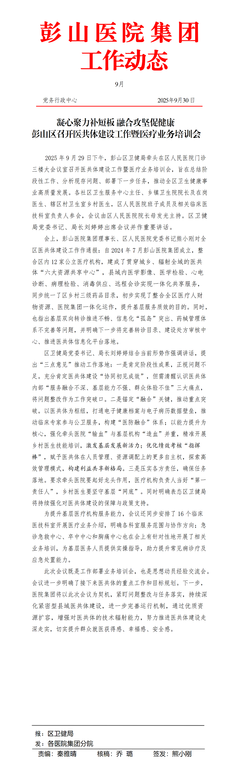 彭山医院集团工作动态