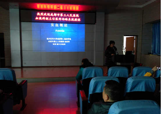 成都市第三人民医院血液科专家郑琳老师为我们带来了 “贫血的概述”学术讲座,我院及各医疗单位医护人员,感到耳目一新、受益匪浅,具有极强的实用性和指导性。一至认为讲的太精彩了。会后郑琳教授还对大家的提问一一作了详细的解答。