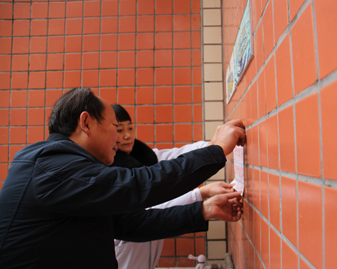 现场教学结束后,李校长和院感科杨晓兵主任会同学校其他领导将“六步洗手法”张贴到了校园的每个洗手池旁。
