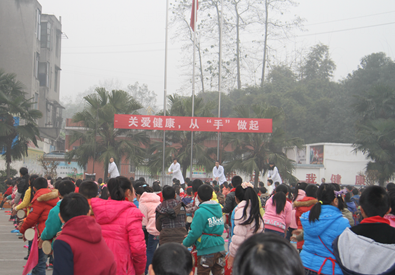 青少年儿童正是长身体、长知识的阶段,从小养成良好的手卫生习惯,预防由手部细菌引起疾病的发生尤为重要,以及“手足口病”的传导和预防,一场由彭山区人民医院“青年志愿服务队”和公义镇中心小学一起酝酿许久的“关爱健康,从手做起”活动在学校操场温暖绽放。