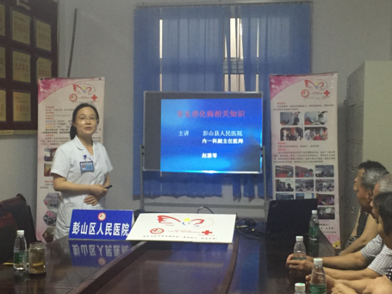 炎炎夏日,天气又闷又热。为了帮助社区居民更好地维护健康,特别是帮助患有慢性疾病的居民进行自我调养和保健,医院青年志愿服务队组织医院内一科副主任(消化内科专家)赵雅琴和糖尿病专科护士与“天使之爱医疗志愿协会”其他成员一行6人,于6月23日下午3点到城中社区老干部活动中心开展健康知识讲座和义诊活动。旨在提高离退休人员的健康意识,丰富他们的预防保健知识,传播健康的生活方式、合理的饮食运动观念。