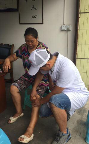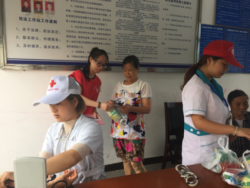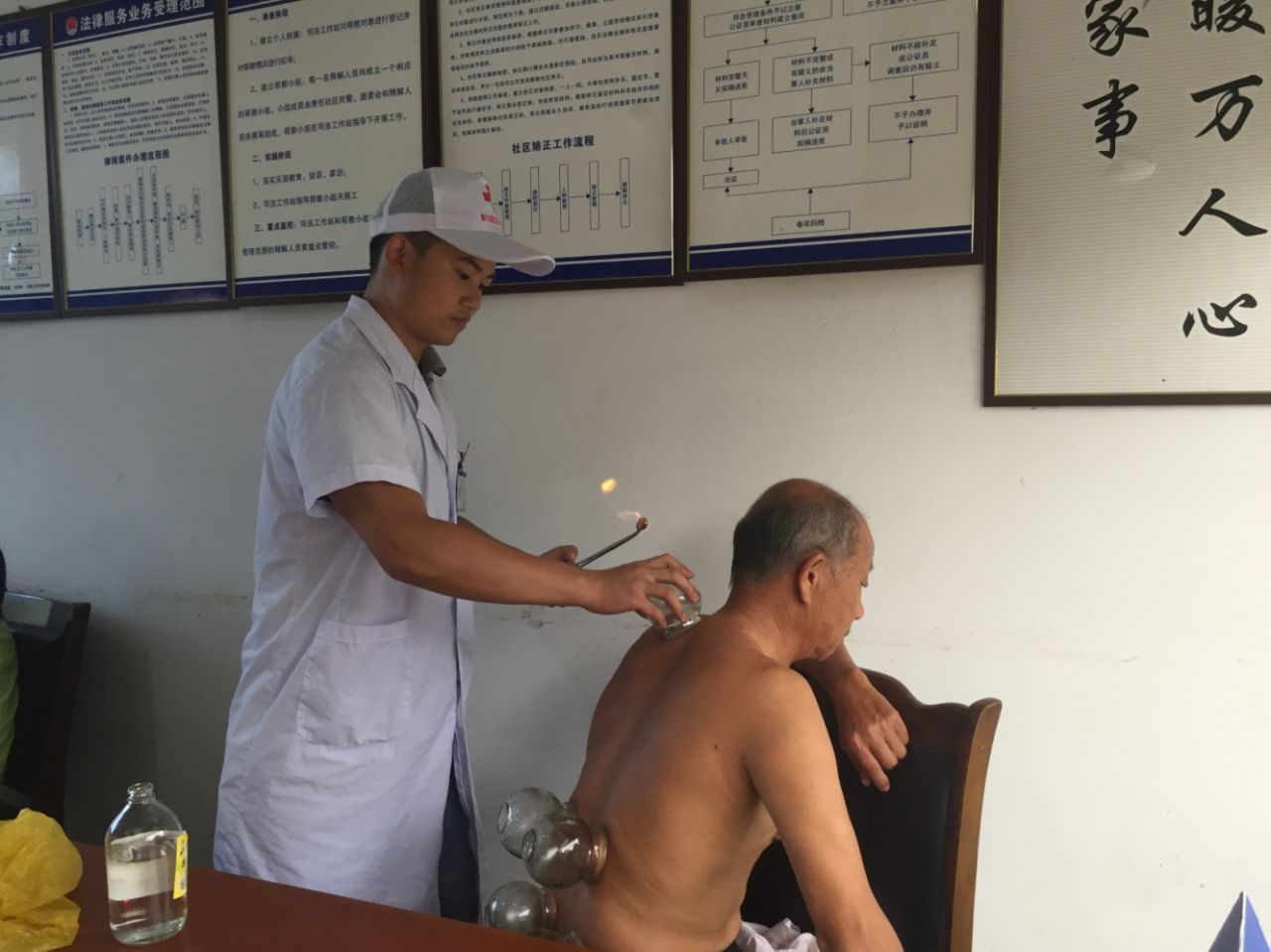 活动现场,康复科的李进医生为老乡们做了一些在家里就能做的肩颈保健常识的交流,并为老乡们做了一些简单的演示和治疗,为有些常年湿热的老乡做了“拔火罐”治疗;糖尿病专科护士毛珠丽跟老人们分享了糖尿病方面的健康常识,并发放了50多份健康教育资料,更为社区群众精心准备了夏季解暑饮片、中药皂、三伏贴等,并现场为他们测量了血压、血糖。