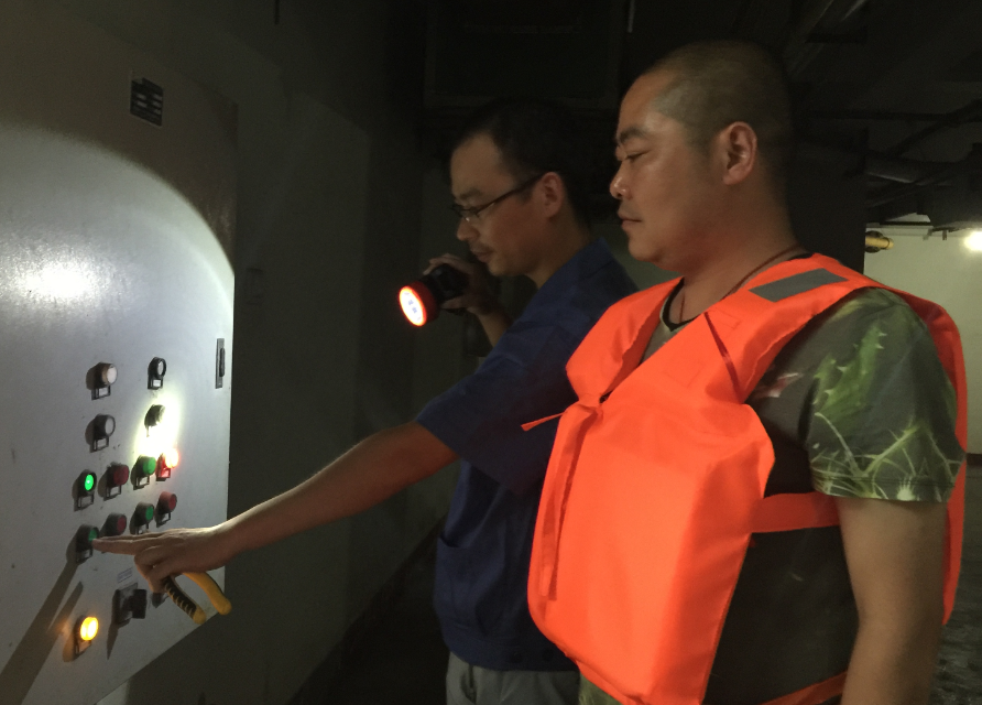 演练模拟了在连续暴雨天气的状况下,地下室排水不畅,顺着汽车坡道向地下室漫水的情况。整个抢险分为四个小组,第一组负责车辆、人员、物资的疏散,维护抢险现场秩序;第二组负责用防汛沙袋封堵坡道和低洼地段;第三组负责启动负一楼污水泵,进行紧急排水;第四组负责对整个地下室重点部位、设备机房进行巡视,发现问题及时上报,如需切断电源的及时关闭电源。整个演练过程按照预案紧张有序的进行。