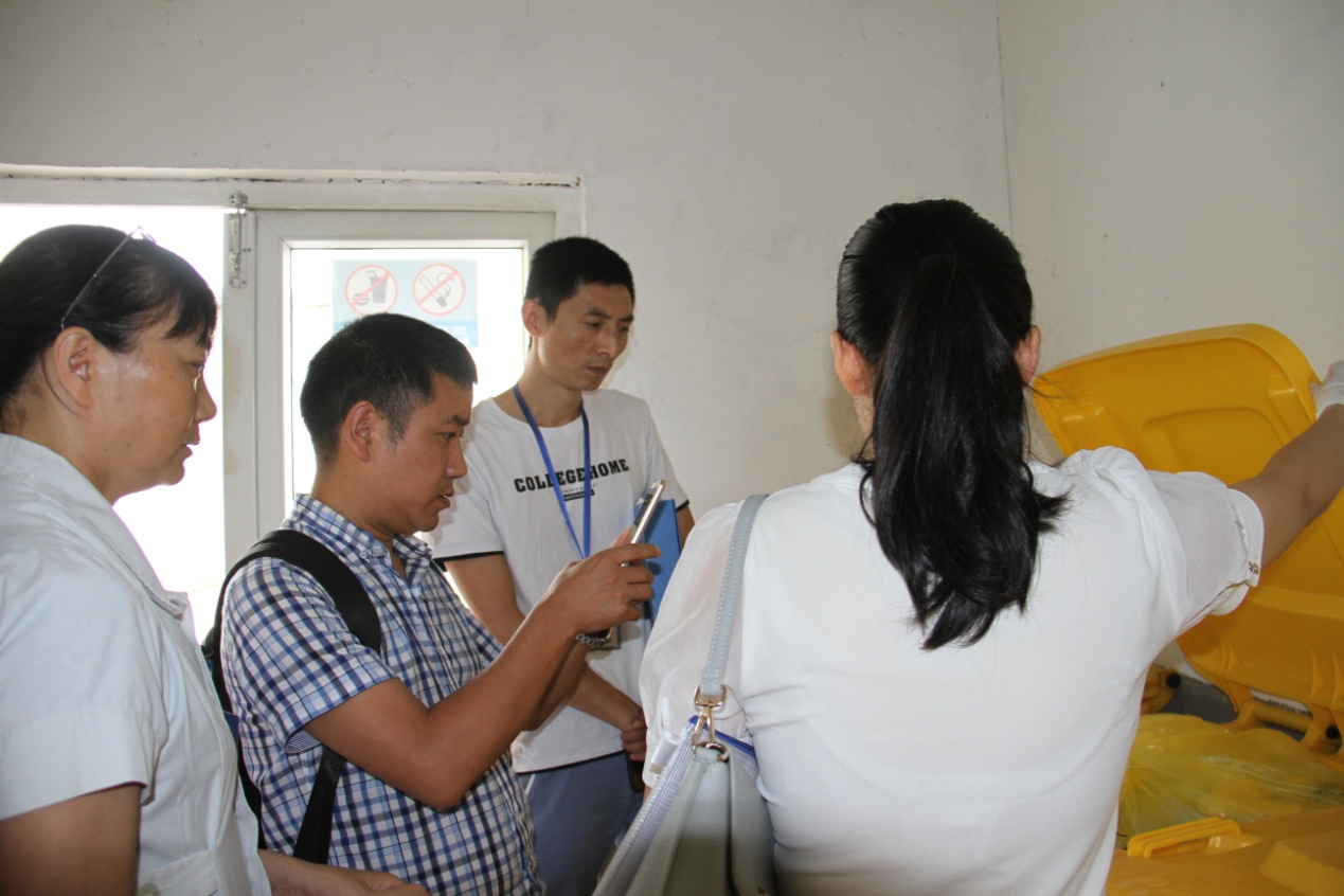 二是实地查看。审计组专家随后到医疗废物暂存处进行了实地查看、拍照,查看了全院医疗废物运送记录、我院与医疗废物处置公司的交接记录、医疗废物暂存室的温度湿度记录、医疗废物的包装、封口、标签是否规范,有无混装等。