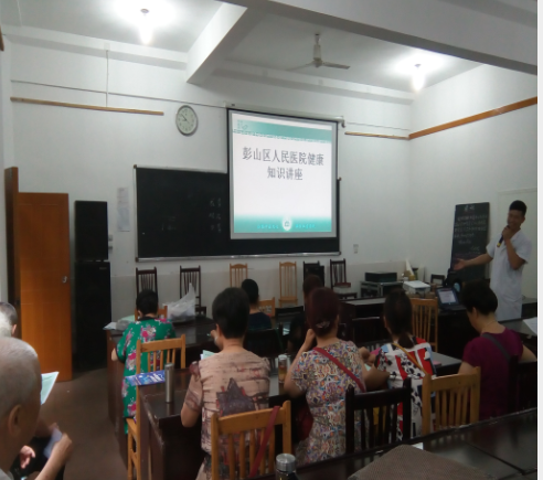 为更好地服务彭山中老年人,让彭山中老年人能更加健康、幸福生活,2017年彭山区人民医院科教科在4月、6月、11月分三次,组织专家到老年大学开展健康知识系列讲座。共计500多名中老年人参加了本年的系列讲座,