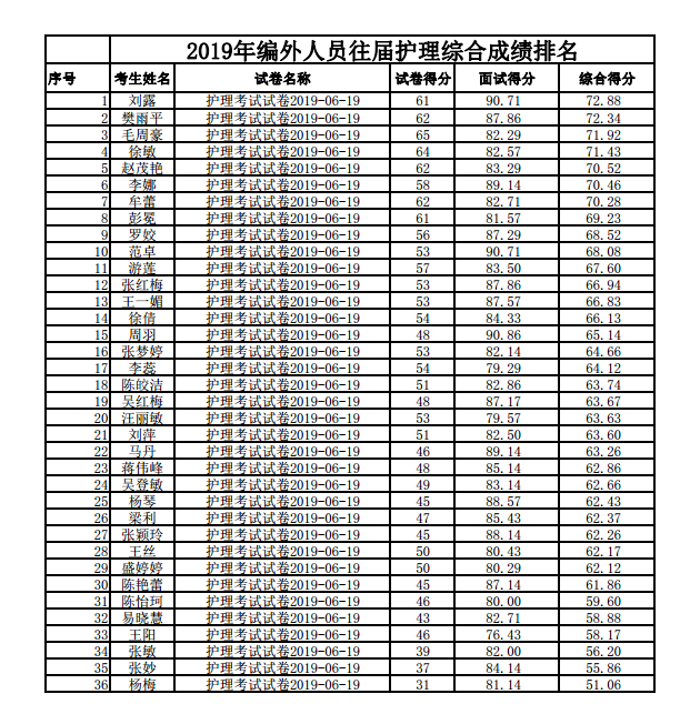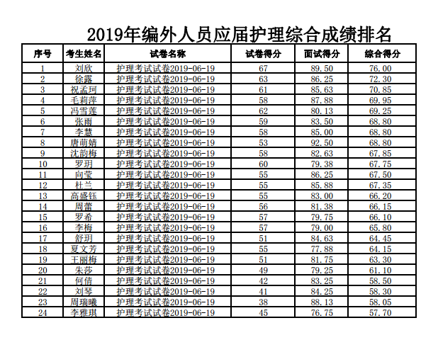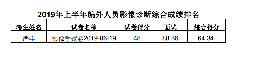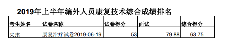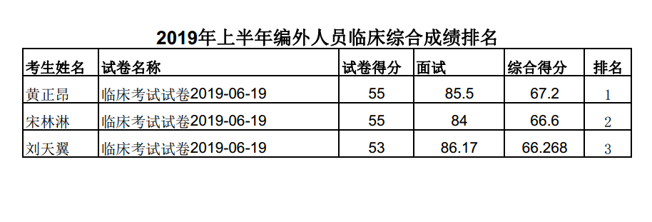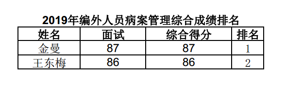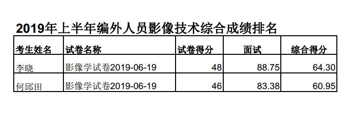 关于2019年上半年区人民医院招聘编外工作人员的总成绩及排名的公告
