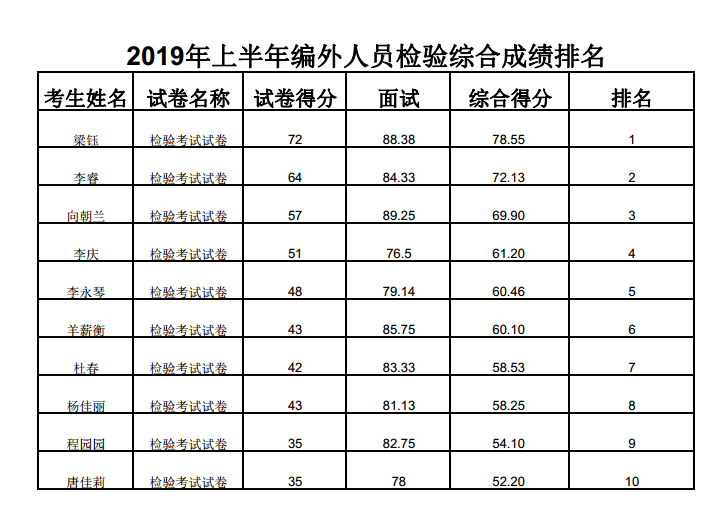 根据眉山市彭山区卫生健康局《关于2019年上半年区人民医院招聘编外工作人员的公告》规定,现将2019年上半年彭山区人民医院招聘编外工作人员的总成绩及排名公告如下: