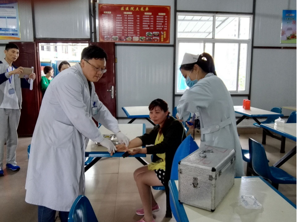 下午3:30时,演练正式开始。本次演练模拟2名就餐人员在医院病员食堂进食午餐后,出现了不同程度的头痛、恶心、呕吐、腹泻、腹痛等症状,初步怀疑为“食物中毒”。事件发生后,食堂工作人员马上汇报总务科宋彤主任,宋主任立即前往食堂查看具体情况,并紧急启用“食物中毒应急预案”,第一时间上报院总值班,拨打急诊120,组织医护人员救治疑似中毒者。总务科与急诊120紧密配合,争分夺秒、有条不紊地采取有效措施救治疑似中毒人员,在突发事件发生时,谢莉萍副院长、张涛院长助理第一时间赶赴现场,指挥部署救治工作,保障中毒人员的健康和生命安全。与此同时,食堂工作人员按防保科指令,立即停止经营活动,当即封存、停售、追回可疑引起中毒的食物,总务科按防保科的要求将食物留样送食品药品卫生监督执法大队检测,同时协助指挥、监督食堂人员销毁、封存食物,清洗、消毒存放食物的容器、场地。相关工作人员安抚家属,做好家属及中毒者的思想工作,确保场所安全稳定,同时向当地卫生行政部门、卫生执法大队汇报情况。
