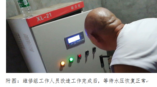 因水泵房改迁,原水泵位置需要根据改迁计划变动,导致此区域水管管网需要改造线路。总务科在做好挖管槽等相关准备工作后,2019年8月27日18时,当大部分职工都已经放下工作,团团围坐,品味佳肴时,总务科维修组工作人员开始了对水管管网的改造工作。高温使他们浸湿了上衣,不得不“赤膊上阵”。但为了尽快恢复全院供水,为临床一线保障用水需求,他们顾不得身上豆大的汗珠,仿佛像医生治病救人一样在与时间赛跑,就是这群不是医生的“医生”的不懈努力,改造工作提前一小时完成,在17时全院恢复供水。