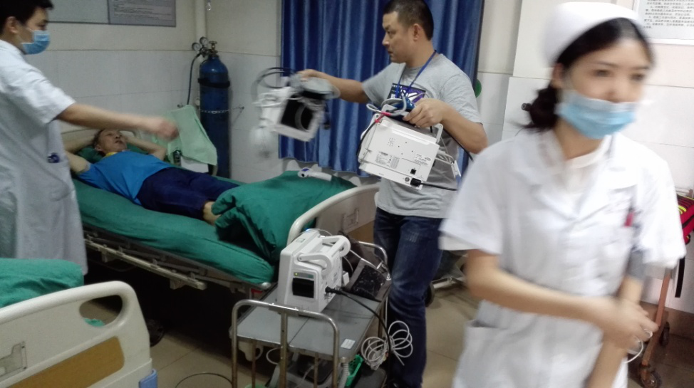 针对此次演练,设备科高度重视,积极组织,制定了详细的实施方案,由李蜀红副院长担任演练组长,设备主任唐建军为副组长。此次演练的假设条件是某建筑工地围墙坍塌造成多名人员受伤,急需呼吸机、监护仪、心电图机等急救设备。下午15:00参加演练的设备科、医务科、急诊科相关人员到达现场,演练正式开始,15:05接到“120”通知的急诊科护士长将情况报告应急小组组长。